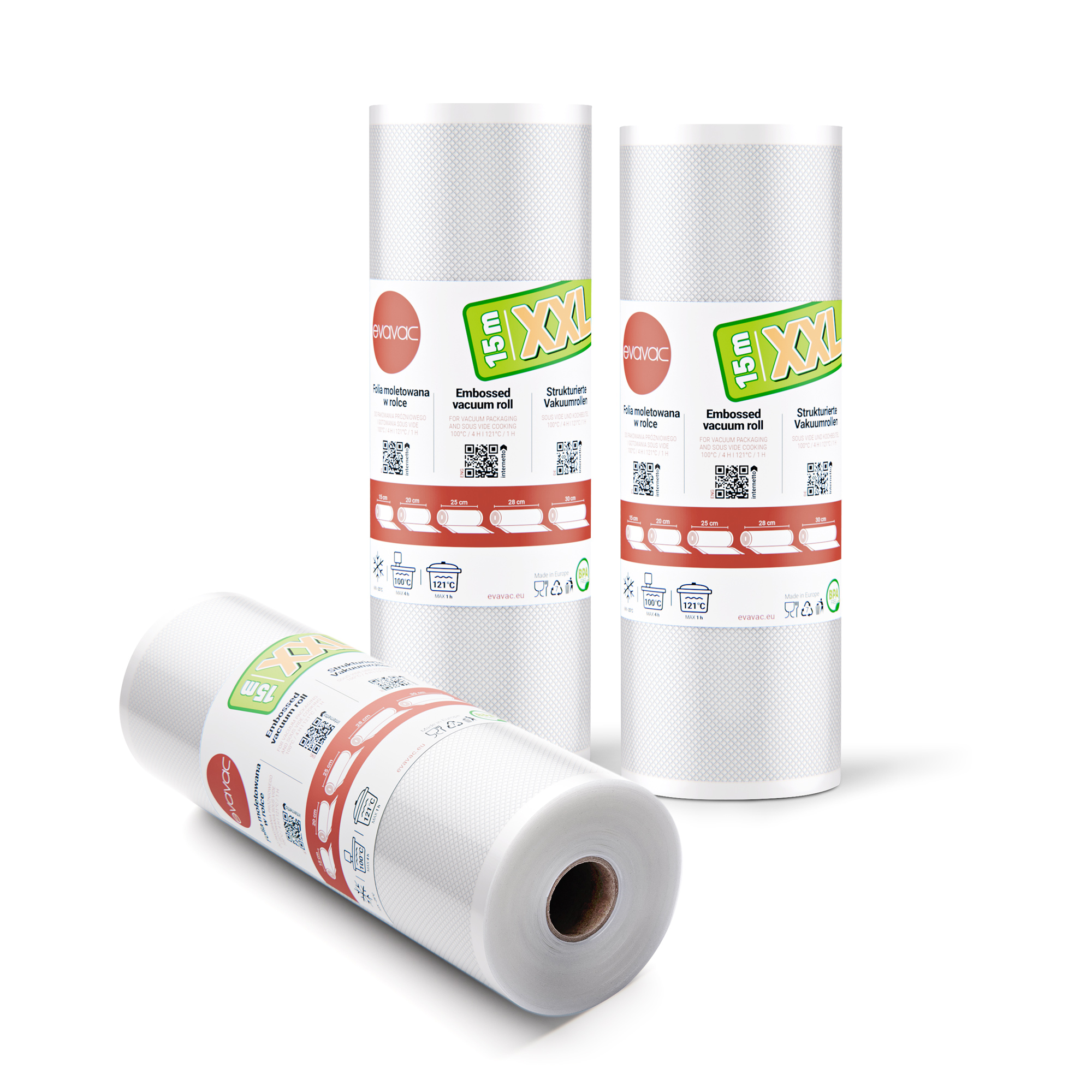 Folia moletowana Evavac XXL zestaw 3x 28x1500cm do pakowania próżniowego